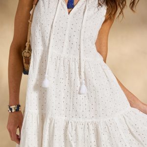 Every bit as charming with booties and a jean jacket as she is with strappy sandals. our Adley Dress features all-over eyelet with sweet dimensional flowers??plus a flattering high neck. belt tie and partial lining. Side zip. Cotton. Dry clean. Imported. Sizes XXS (00). XS (0?C2). S (4?C6). M (8?C10). L (12?C14). XL (16?C18). XXL (20?C22). Approx. 51l.