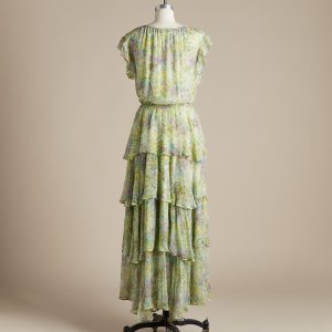There’s so much beautiful movement in our embroidered dress with dramatic. overlaying tiers. V-neck and ties. ruffled neckline and covered eyelet buttons. Fully lined. Cupro. Hand wash. Imported. Exclusive. Sizes XS (0 to 2). S (4 to 6). M (8 to 10). L (12 to 14). XL (16 to 18). XXL (20 to 22). Approx. 54-1/2L.