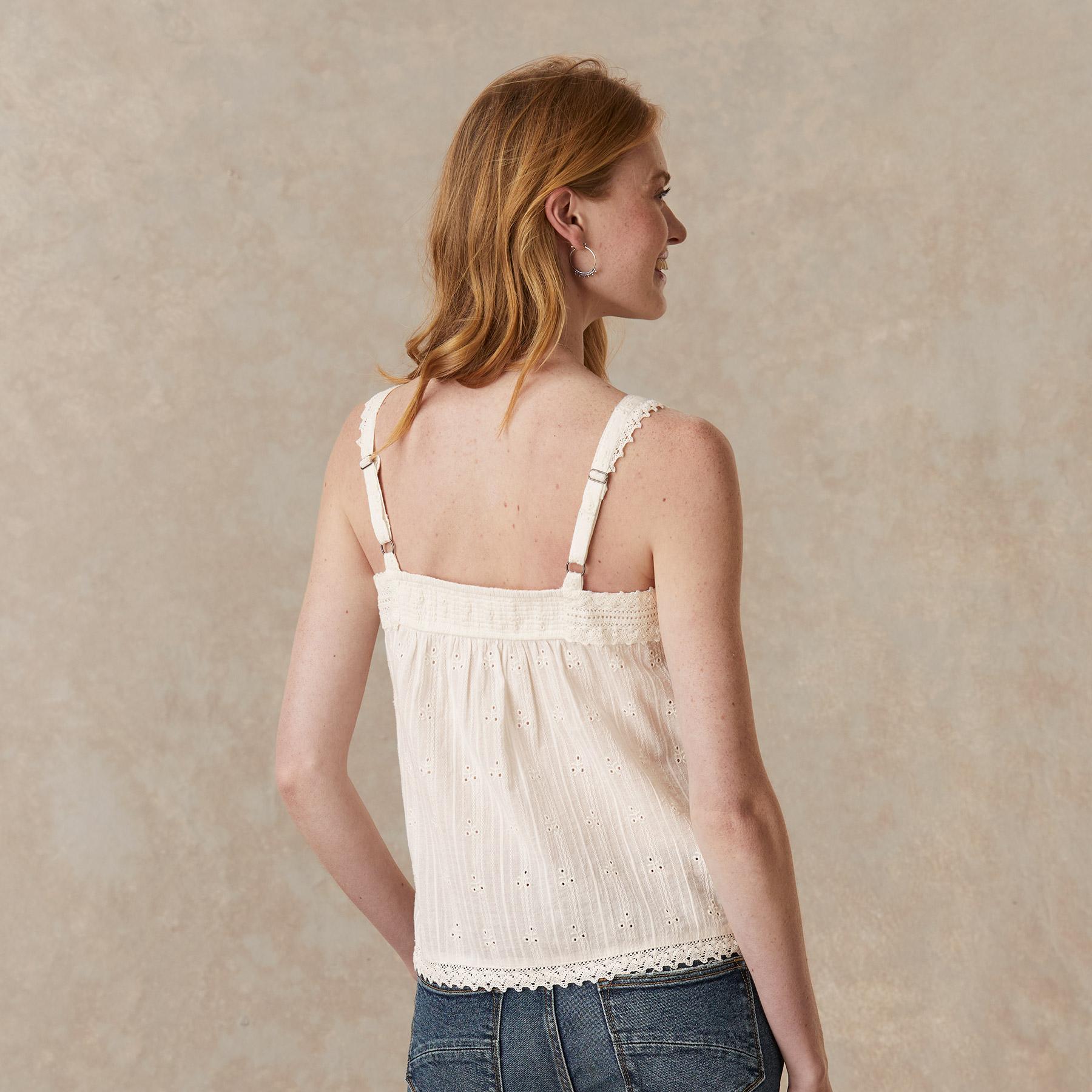 Vintage-inspired. oh-so-feminine camisole with beautiful tonal embroidery and lace details at neckline and front. Adjustable straps and elastic at back neck for comfortable fit. Cotton/viscose. Machine wash. Imported. Exclusive. Sizes XS (0?C2). S (4?C6). M (8?C10). L (12?C14). XL (16?C18). XXL (20?C22). Approx. 25l.